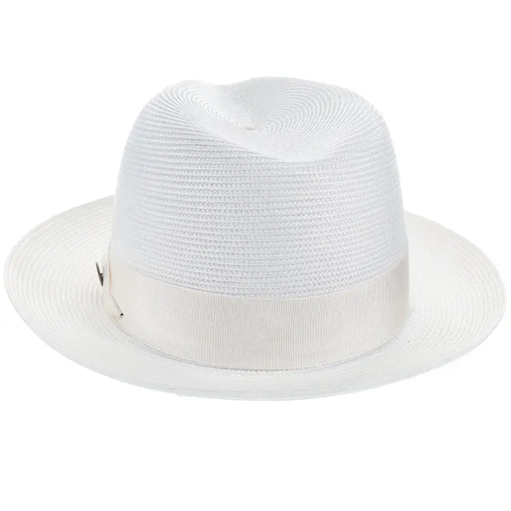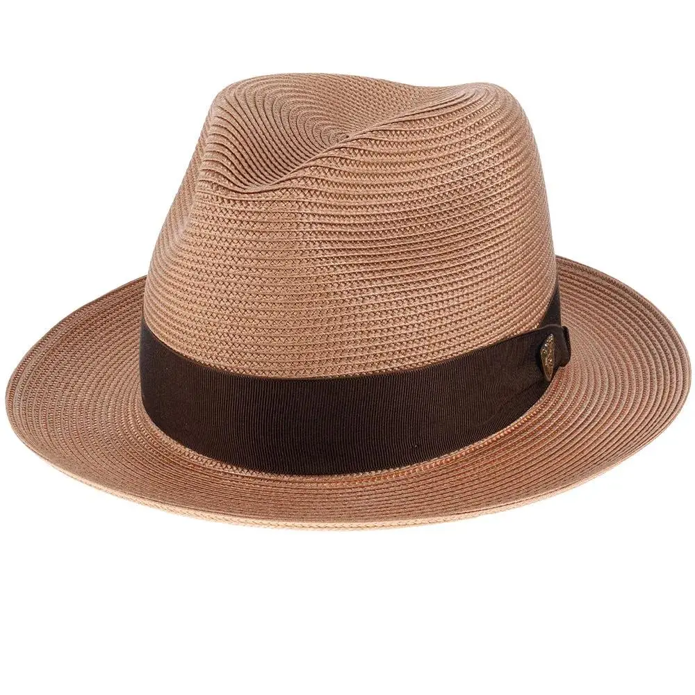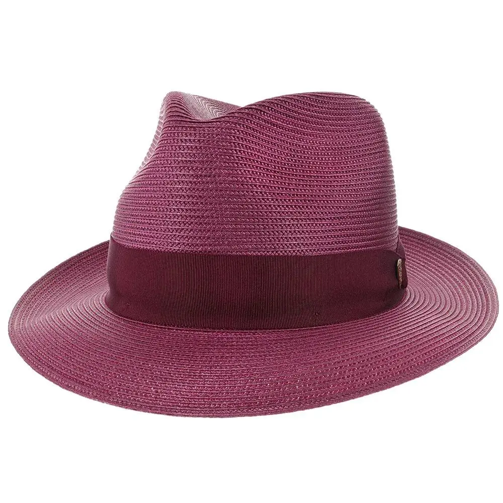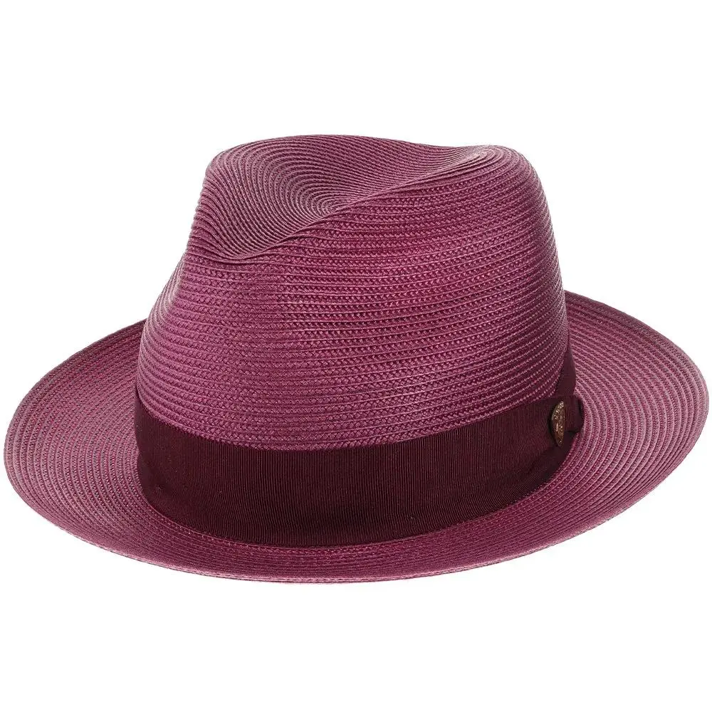 If you need a summer fedora, look no further than this Dobbs Rosebud straw fedora. Looking dressy when it's hot outside can be tricky, but Dobbs comes to the rescue with this spectacular hat. These fedoras are stunning with their bold color statement, and a complementing grosgrain hatband will have you looking fashionable, while remaining cool.